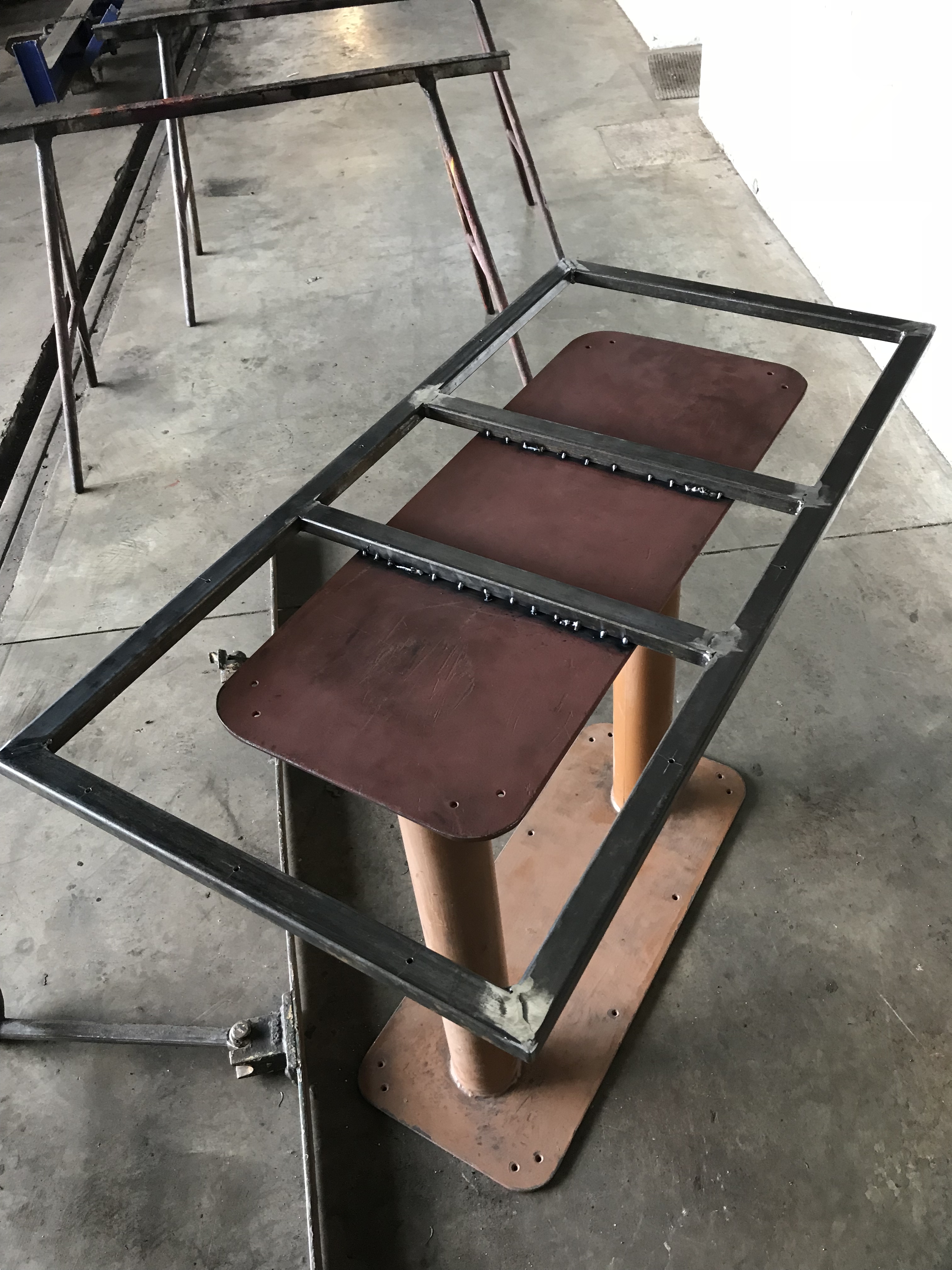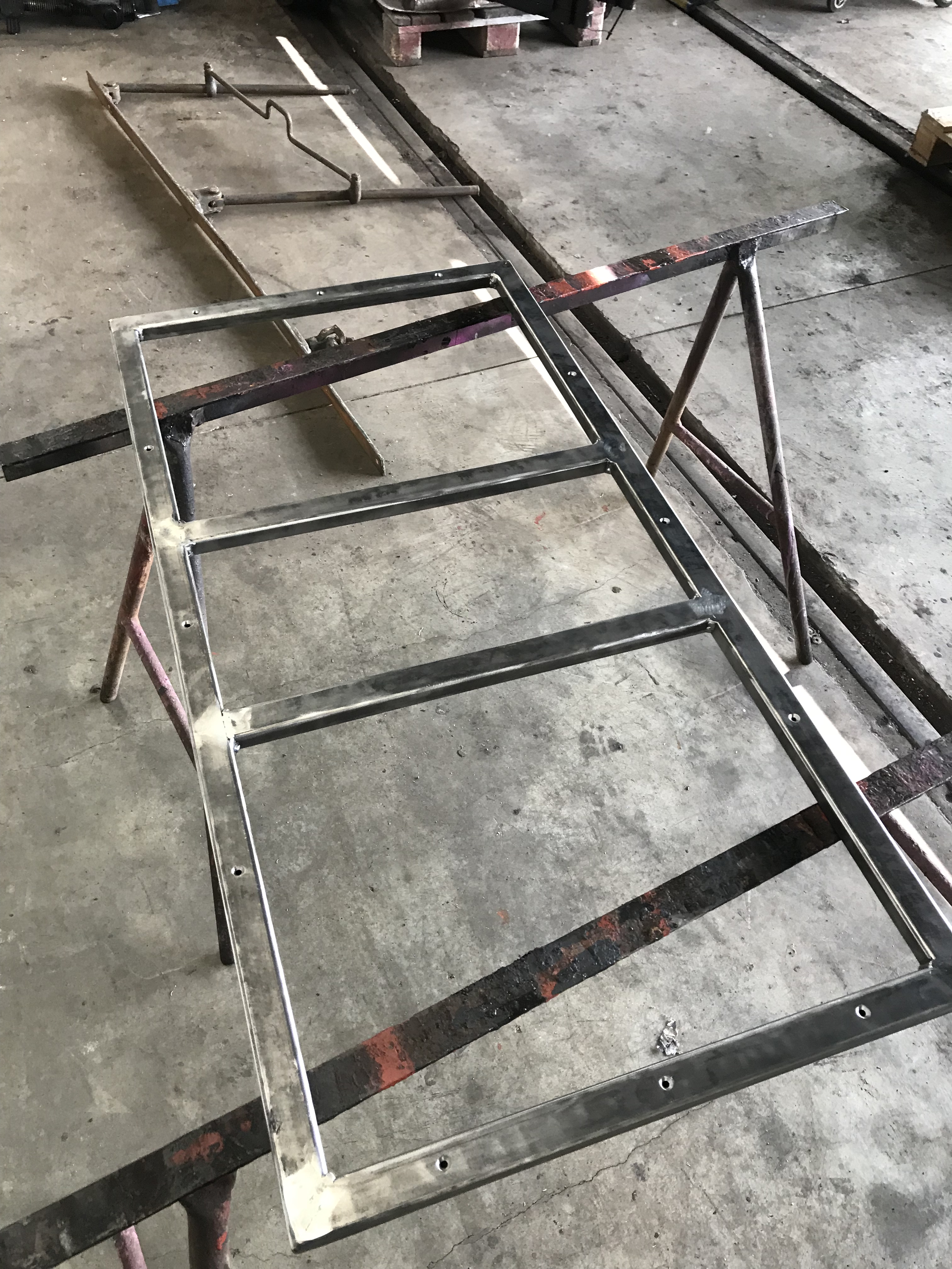 | Blank poliert, bereit fürs Anschweißen an die Tischbeine... |